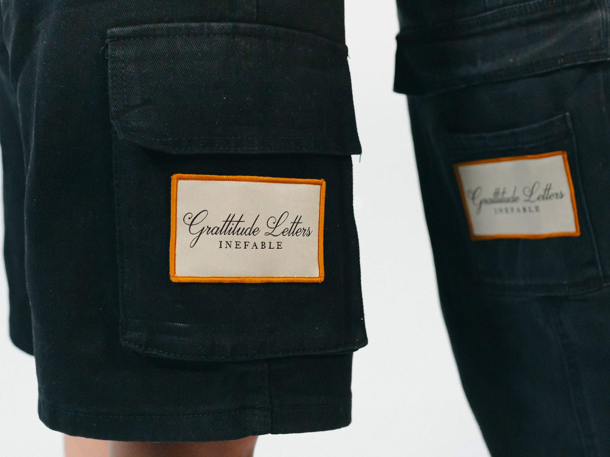 Function meets gratitude. These black denim cargo shorts are reminders of where you’ve been, and how far you’ve come. Designed for movement, made for purpose.