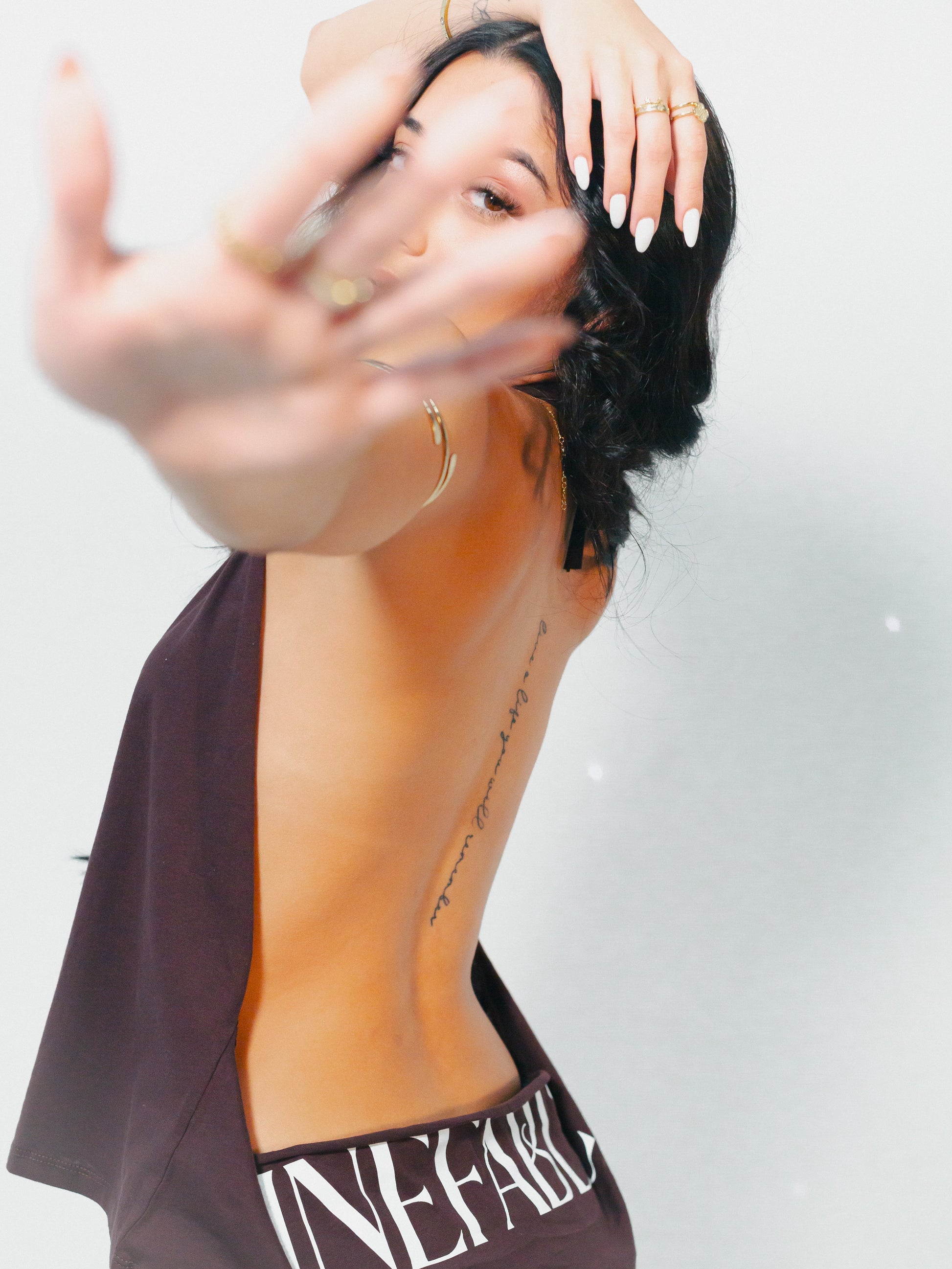 This open-back cropped tee reimagines gratitude in a feminine, flowing silhouette. the message is clear: gratitude is strength in softness, all presence. Perfect for layering or standing out solo